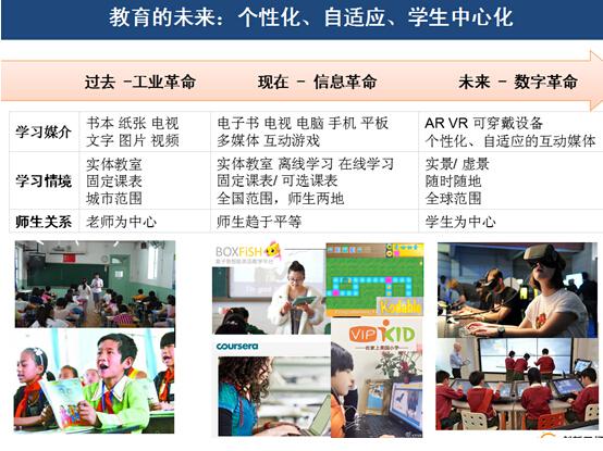再谈一(yī)下(xià)教育,我们过去说醫(yī)疗是没有接受新技術(shù)的,教育可(kě)能(néng)比醫(yī)疗更没有接受新技術(shù)。因為(wèi)教育是我们人(rén)类几千年(nián)摸索出来的过程,這(zhè)几年(nián)来没有數(shù)据的基础上(shàng),最好的教育就是老(lǎo)師(shī)在上(shàng)面讲,大家做(zuò)筆(bǐ)记,大家提問(wèn)之后结束了(le)。现在從(cóng)書(shū)记到电子數(shù),到互动,跟老(lǎo)師(shī)互动之外(wài),还有一(yī)些在教書(shū)的時(shí)候,用平板来做(zuò)更有趣更生动的活动。让小朋(péng)友(yǒu)跟生动有趣的大孩子的老(lǎo)師(shī)沟通(tōng)学英语,在有趣的过程中学习。未来我们有更多的期望,我们看(kàn)到了(le)一(yī)些脸書(shū)投资的公司,微(wēi)软宣布的新产品,可(kě)穿戴的,虚拟现实的,当它形成以后,就会跟学习一(yī)样有趣。对我最难的就是历史地(dì)理,因為(wèi)过去读就是一(yī)大堆文字,就是背哪个皇帝,几年(nián),哪里战争,变成没有意思的东西(xī)。如(rú)果有虚拟现实的头盔,焚書(shū)坑儒什么状况,让你变成秦始皇让你去了(le)解历史。听到的你可(kě)能(néng)会忘记,看(kàn)到的你就会记得,虚拟实境去学习,把学习当成樂(yuè)趣,這(zhè)样他(tā)们的成長(cháng)就会比现在快(kuài)很(hěn)多。這(zhè)个思维很(hěn)难,因為(wèi)從(cóng)农业到工(gōng)业,從(cóng)PC到移动,這(zhè)是换一(yī)个脑袋思考的,但(dàn)是問(wèn)题是我们现在没有谁来引领這(zhè)个,我们每一(yī)个人(rén)包括创新工(gōng)场的每一(yī)个投资总监,包括我们見(jiàn)到的年(nián)轻创业者都(dōu)是這(zhè)样教大的,可(kě)能(néng)有一(yī)定的問(wèn)题。但(dàn)是有全世界在這(zhè)方面的努力,我相信未来一(yī)定会很(hěn)光(guāng)明(míng)的。