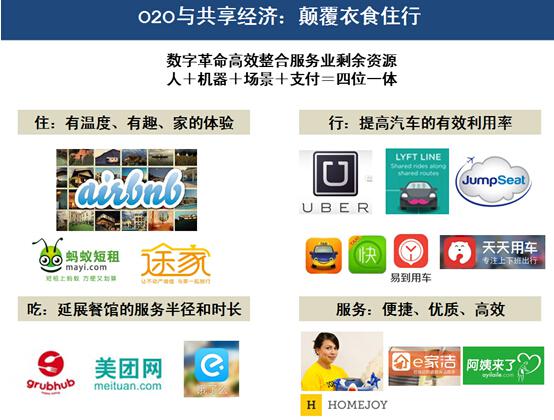 刚才谈到了(le)很(hěn)多共享经济。所谓共享经济,就是我们花錢(qián)把房子买下(xià)来,车买下(xià)来,其实现在都(dōu)可(kě)以分享,谁愿意帮我開(kāi)车,证明(míng)他(tā)的能(néng)力和(hé)态度很(hěn)好,就可(kě)以按赞,投票,就可(kě)以成為(wèi)嘀嘀快(kuài)的最棒的司机。美國(guó)的一(yī)个租房网站,有一(yī)次他(tā)的老(lǎo)板坐(zuò)在另外(wài)一(yī)个美國(guó)某酒店集团的老(lǎo)板旁边,酒店老(lǎo)板跟他(tā)说我们是特别好的年(nián),我们会有两万家增加,租车网站的老(lǎo)板说我们每天都(dōu)有两万家增加,就是把房子出租给别人(rén)的。美团,会告诉我们邻家的小店,或者厨房都(dōu)可(kě)以出租,在网上(shàng)通(tōng)过别人(rén)的评比来吃饭。食住和(hé)行(xíng),都(dōu)被共享经济集入,让大家有更多的可(kě)支配的金(jīn)錢(qián)来使用,不用买一(yī)个厨房,买一(yī)个房子,买一(yī)辆车,我如(rú)果用别人(rén)的,就可(kě)以节省錢(qián),而且可(kě)以享用到方便,最好的服务。除了(le)衣食住行(xíng),在中國(guó)特别火(huǒ)的就是服务,来家里清洁也好,或者美甲也好,或者做(zuò)各种美容按摩,未来在家里都(dōu)可(kě)以发生,对于我们消費(fèi)者来说是一(yī)个巨大的福音,因為(wèi)我们什么時(shí)間(jiān)可(kě)以得到更好的服务,而且很(hěn)重要(yào)的是省掉了(le)中間(jiān)人(rén)。如(rú)果在网上(shàng)有很(hěn)多人(rén)说了(le)這(zhè)个阿姨,這(zhè)个月嫂做(zuò)的特别棒,对你来说就是一(yī)种保证。共享经济的软件平台,他(tā)们抽的佣金(jīn)一(yī)定非常有限,花更少(shǎo)的錢(qián)等到更好的服务,這(zhè)个对整个的社会的促进是非常快(kuài)速的。